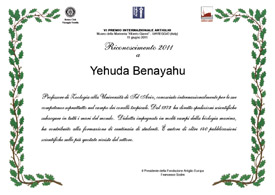RICONOSCIMENTO 2011 A YEHUDA BENAYAHU